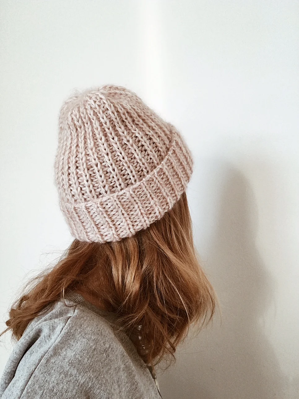 Beanie No. 1 er en tyk og varm hue strikket i halvpatent.