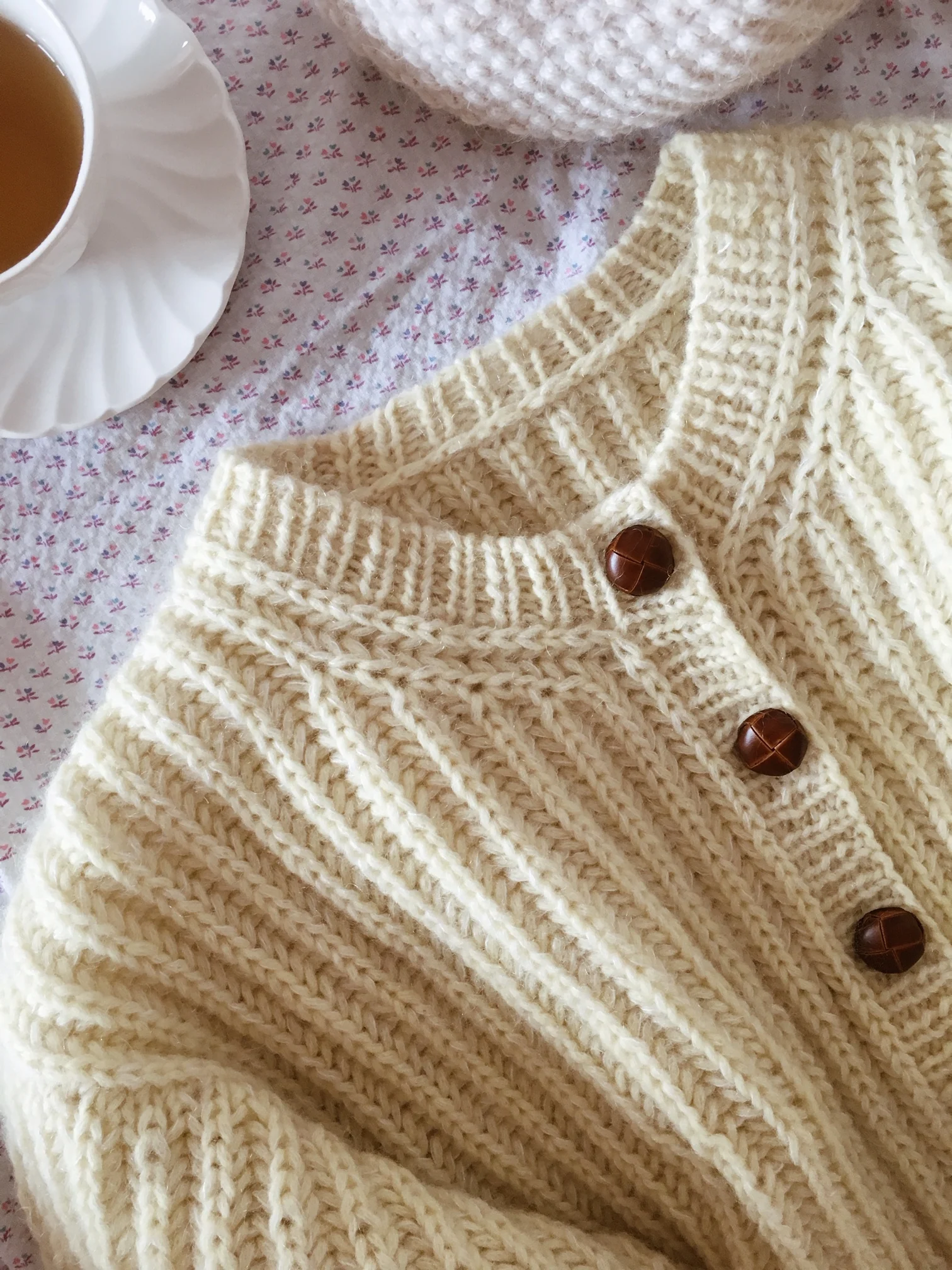 Der Cardigan No. 5 ist eine klassische Strickjacke im Patentmuster.