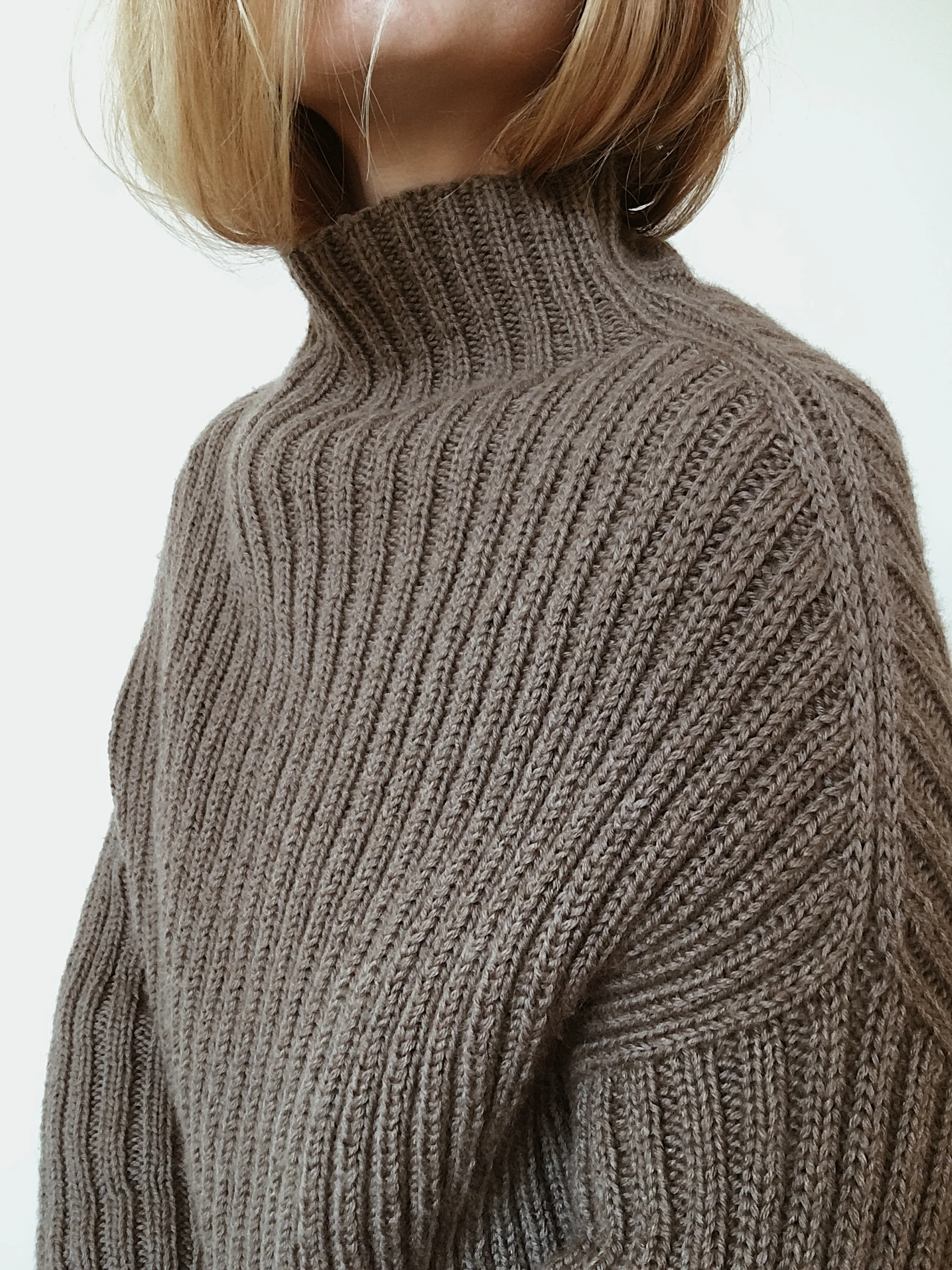 Sweater No. 8 is an oversized sweater with slim sleeves and high neck.